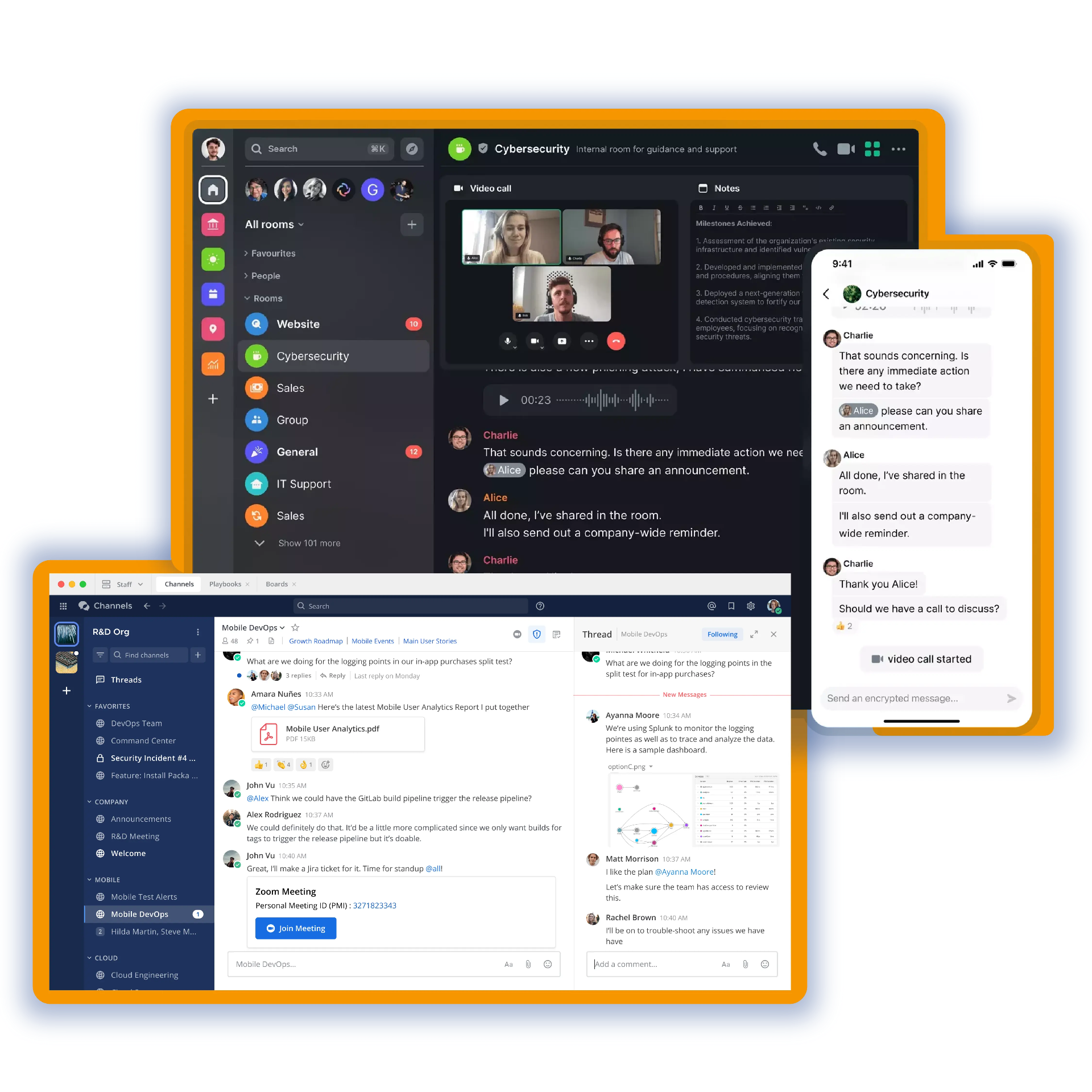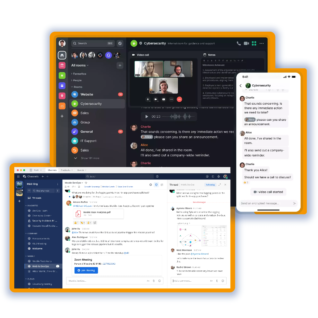 Chat federata utilizza la crittografia end-to-end di livello più elevato, per proteggere i membri del tuo team e la loro privacy. I messaggi della chat possono essere decriptati solo dai partecipanti alla conversazione, in questo modo, anche se un server o una rete vengono compromessi, una terza parte non è in grado di visualizzare i dati crittografati